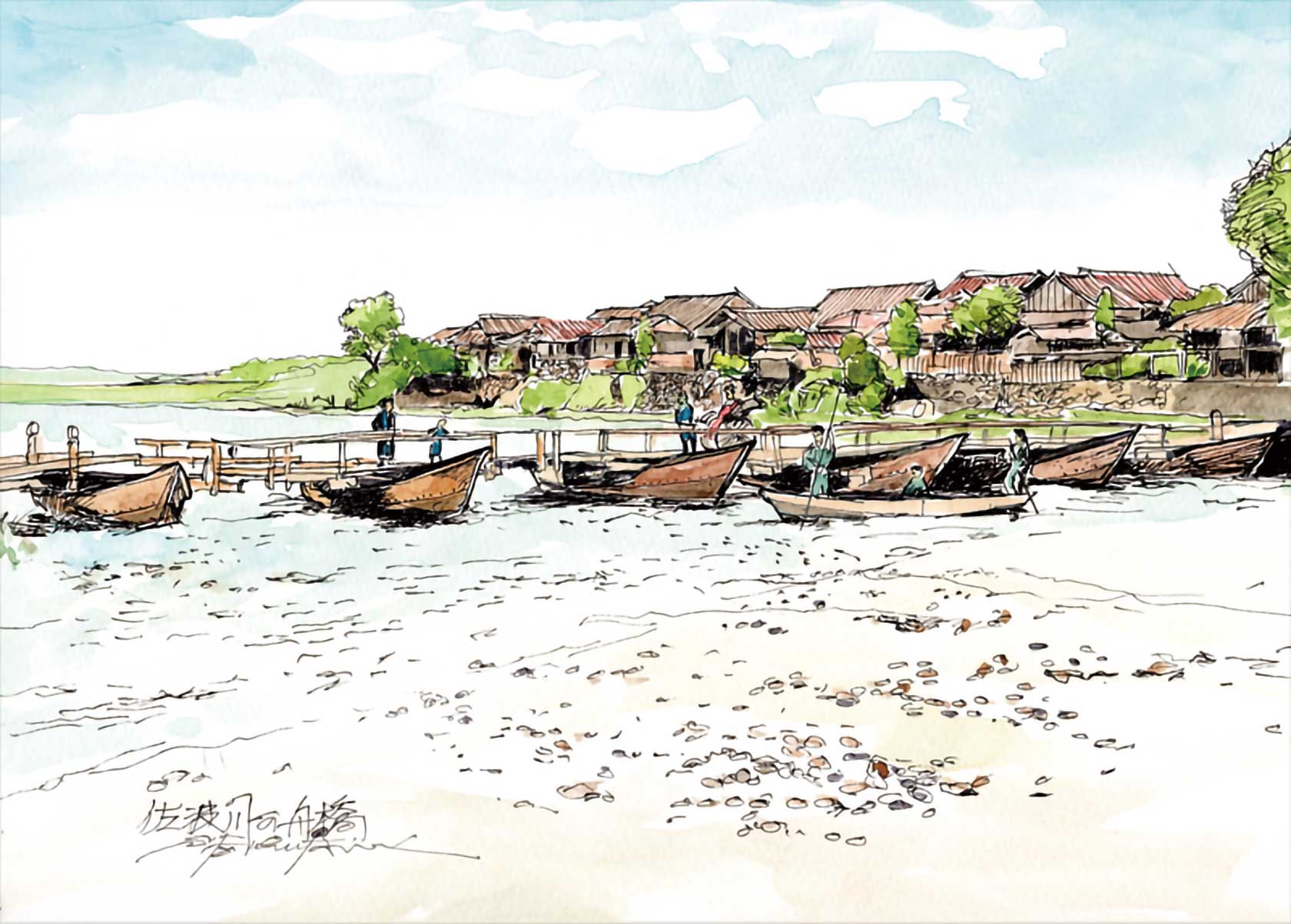 【イラストでたどる萩往還】No.32「佐波川舟橋」