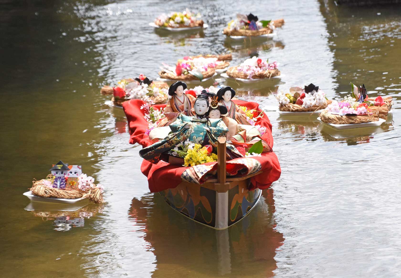 趣のある小さな藍場川に子供たちが作ったおひな様を桟俵に乗せ、川に流し子供たちの無病息災と成長を願う行事です。